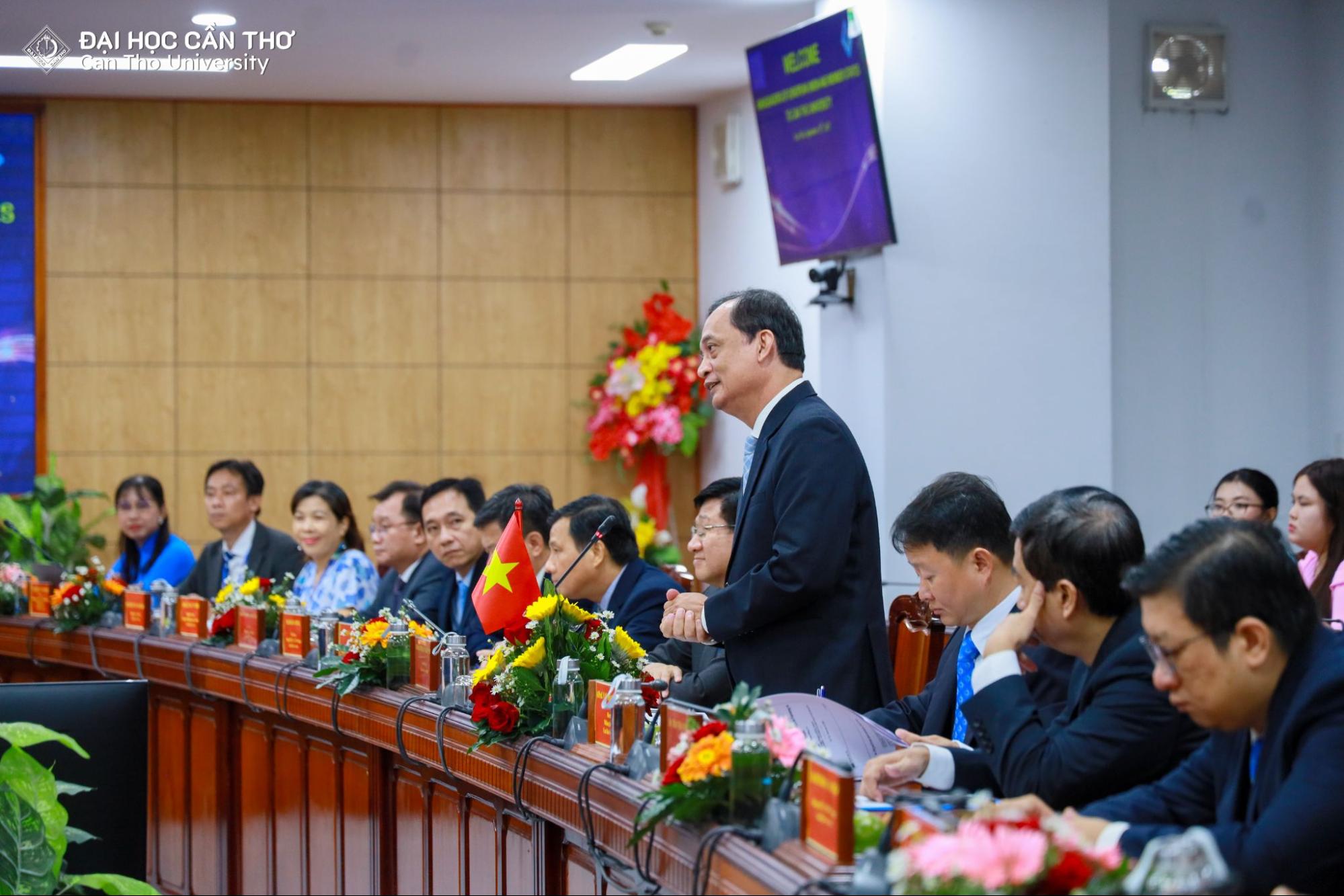Về phía ĐHCT, có GS.TS. Nguyễn Thanh Phương - Chủ tịch Hội đồng Trường; PGS.TS. Nguyễn Hiếu Trung - Phó Hiệu trưởng cùng lãnh đạo các đơn vị trực thuộc và sinh viên cùng tham dự.