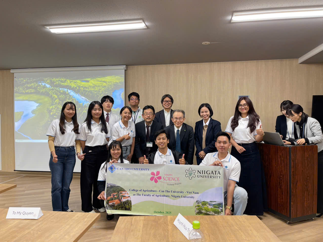 Từ ngày 23/10 đến 30/10, 01 giảng viên, 01 nghiên cứu sinh chương trình, 01 nghiên cứu sinh, 02 học viên cao học chuyên ngành Kỹ thuật Nông nghiệp thông minh và 04 học viên Ngành hệ thống nông nghiệp (Chuyên ngành Biến đổi khí hậu và Nông nghiệp nhiệt đới bền vững) đã tham gia Chương trình trao đổi khoa học Sakura tại Đại học Niigata.