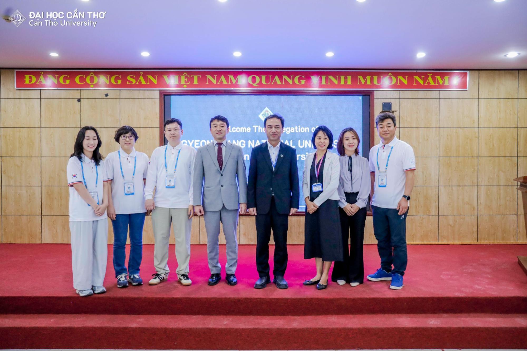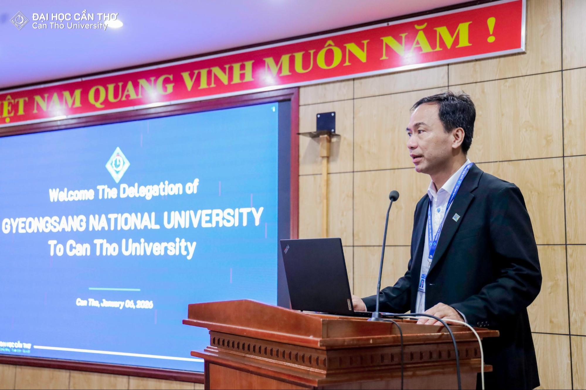 Sáng ngày 6/1/2026, Trường Đại học Cần Thơ (CTU) đã đón tiếp GS. Ha Jae Pil cùng 50 sinh viên đến từ Đại học Quốc gia Gyeongsang (Hàn Quốc) tham gia chương trình trao đổi tín chỉ quốc tế tại cơ sở chính của trường. Chương trình nằm trong khuôn khổ hợp tác giáo dục song phương, góp phần thúc đẩy giao lưu học thuật và văn hóa giữa hai cơ sở đào tạo.